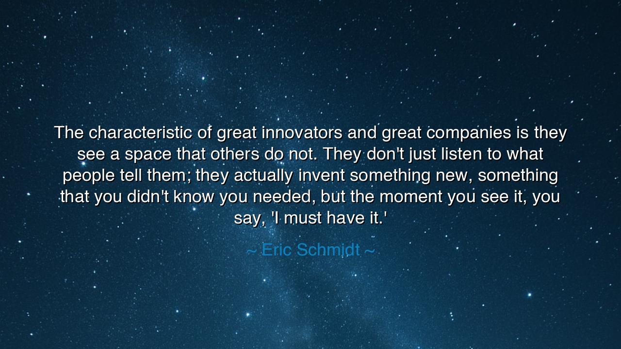 The characteristic of great innovators and great companies is they see a space that others do not. They don't just listen to what people tell them; they actually invent something new, something that you didn't know you needed, but the moment you see it, you say, 'I must have it.'